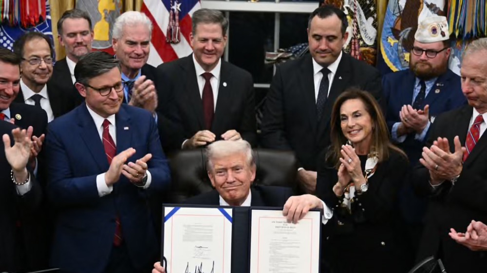 “Kami tidak akan menyerah terhadap pemerasan. Demokrat mencoba memeras negara kami,” ujar Trump usai menandatangani RUU tersebut di Gedung Putih.
