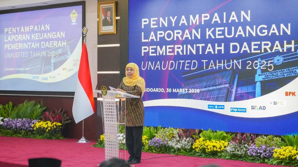 ENTERJATIM.COM – SIDOARJO, 31 Maret 2026 — Khofifah Indar Parawansa bersama 36 pemerintah kabupaten/kota di Jawa Timur menyerahkan Laporan Keuangan Pemerintah Daerah (LKPD) Tahun Anggaran 2025 unaudited kepada BPK RI Perwakilan Jawa Timur, Senin (30/3). Adapun Kota Surabaya dan Kabupaten Sumenep telah lebih dulu menyampaikan laporan tersebut.