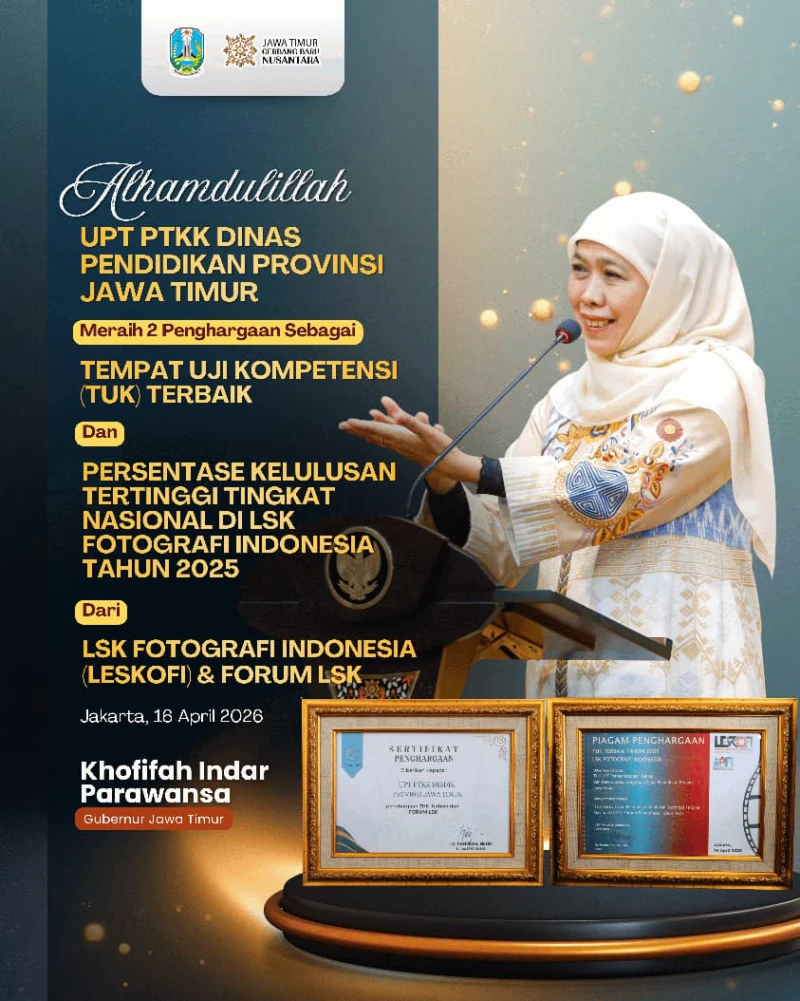 ENTERJATIM.COMSURABAYA, 20 April 2026 – Khofifah Indar Parawansa menegaskan komitmennya dalam memperkuat sumber daya manusia (SDM) vokasi melalui capaian membanggakan Unit Pelaksana Teknis Pengembangan Teknis dan Keterampilan Kejuruan (UPT PTKK) Dinas Pendidikan Provinsi Jawa Timur.