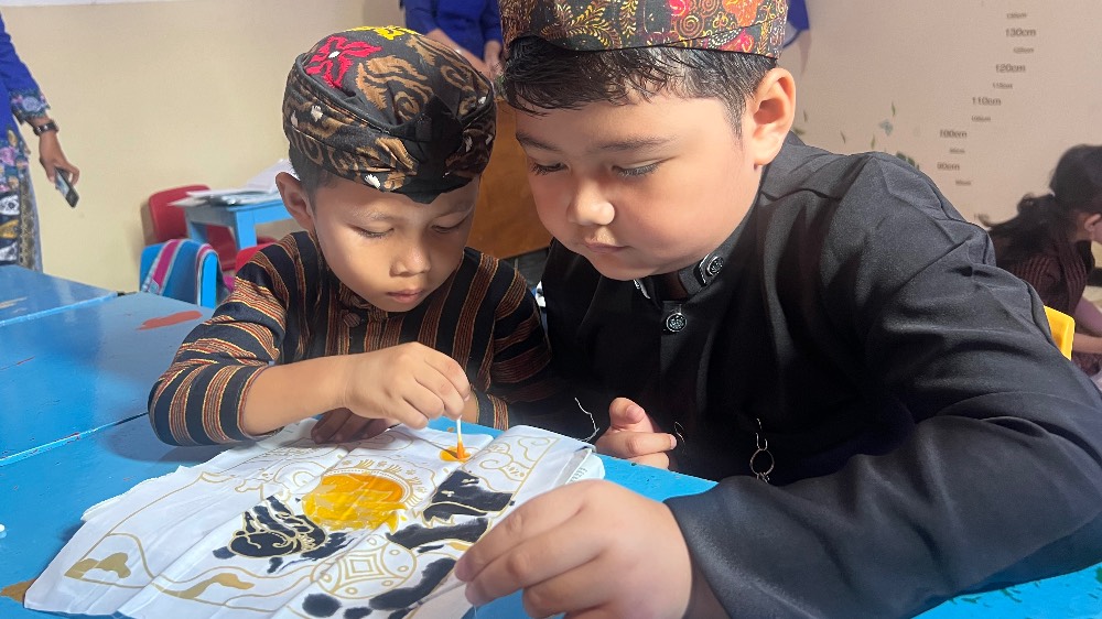 Kegiatan kemudian dilanjutkan dengan lomba membatik sederhana yang dirancang khusus untuk anak usia dini. Melalui aktivitas ini, siswa diperkenalkan pada salah satu warisan budaya Indonesia, Batik Indonesia, dengan cara yang menyenangkan dan mudah dipahami.